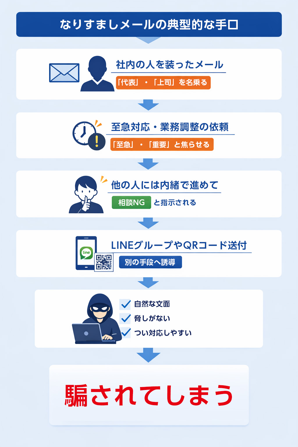 一度対応してしまうと、被害が個人にとどまらず、社内や取引先へ広がる恐れもあります。
