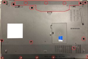 それから各ネジを外していきます。ネジの数・・・多い!そしてバッテリーの下にも3つほどさらに隠れています。