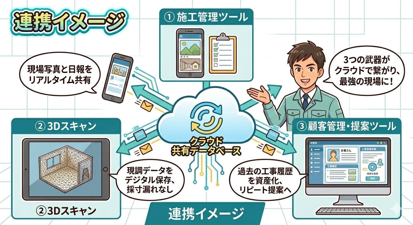 ポイント:「5年前のあの工事、どうなっていたっけ?」に即答できる体制が、顧客の信頼と成約率を高めます。